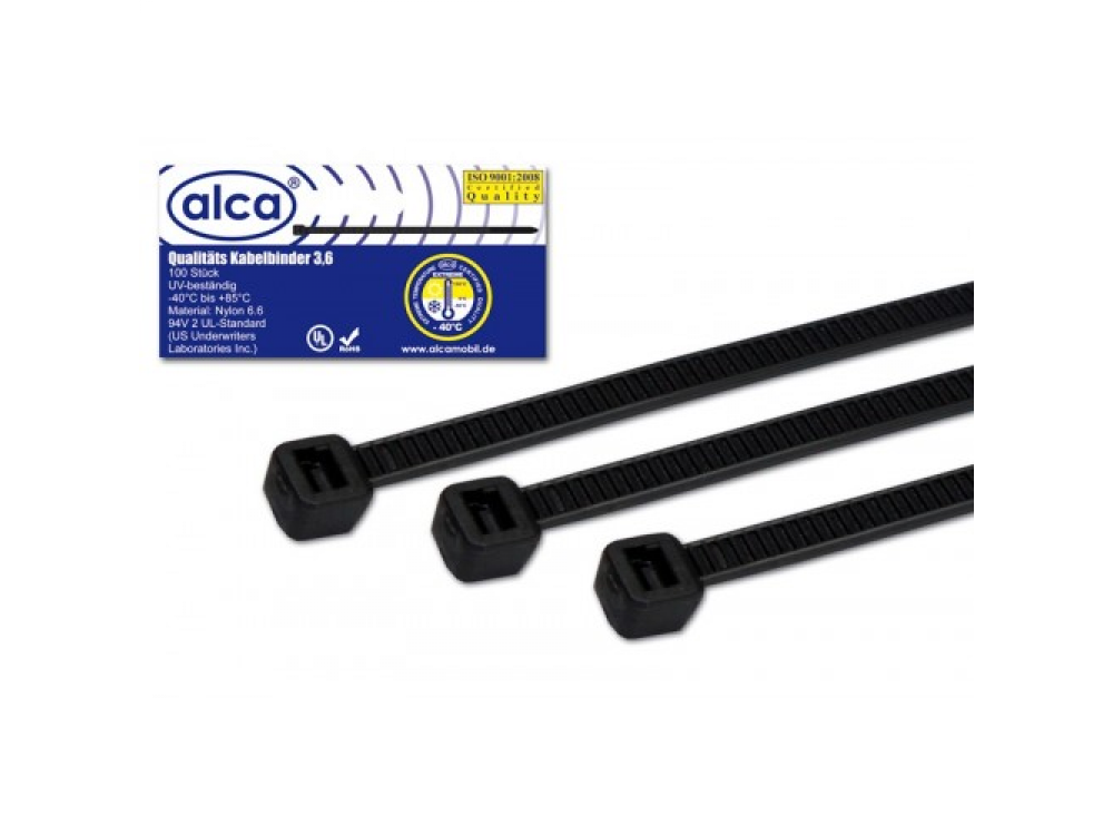Хомут—стяжка кабельная пластиковая W3.6 L200, цвет черный, 100 шт. в упаковке, температура эксплуатации от — 40 до + 85, материал нейлон, устойчивость к окислению и травлению.