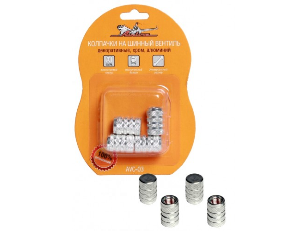 Колпачки предназначены для защиты шинного вентиля от попадания загрязнений и жидкости. Колпачки помогают создать герметичность внутри шины автомобиля, создавая барьер для травления воздуха. Данная модель колпачков изготовлена из алюминия и резины. Поверхность колпачков украшена декоративной резьбой.