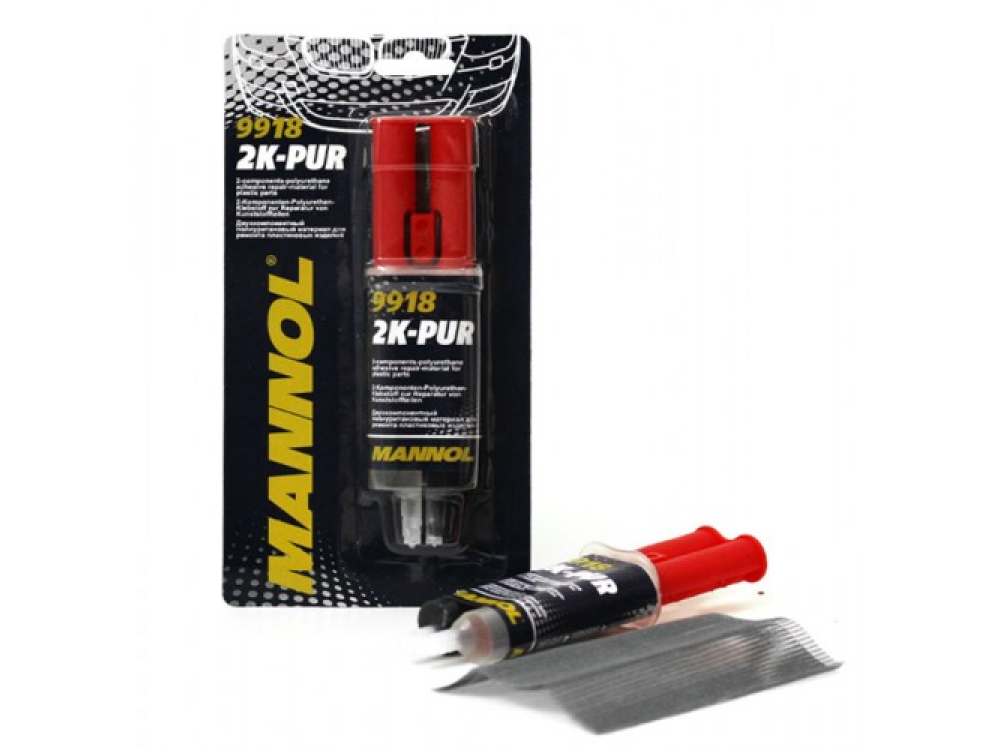 MANNOL 2K-PUR – двухкомпонентный клей для структурного и косметического ремонта изделий из пластика, металла, дерева, камня и т.д. Полное затвердевание для возможной механической обработки: 2-3 часа при комнатной температуре. В течение длительного времени сохраняет эластичность, не осаждается, устойчив к погодным воздействиям и старению. Хранить этот продукт в плотно закрытой оригинальной упаковке в сухом помещении при температурах от +5 до +25 °C.