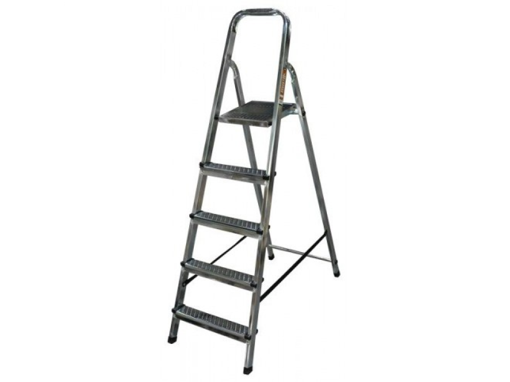 Стальная стремянка Вихрь СС 1х5 73/5/1/9 используется в быту. Имеет пять широких рифленых ступенек.