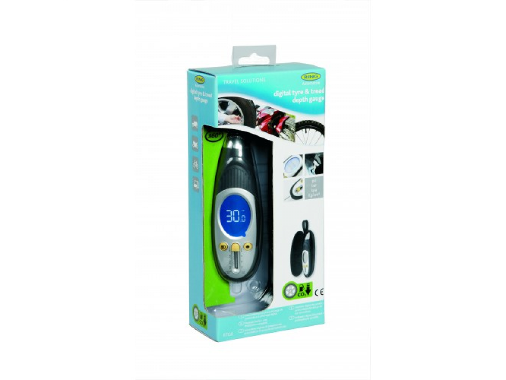 Цифровой манометр с устройством для измерения протектора Ring RTG6 - это точный цифровой манометр, который дает показания давления и глубину протектора, чтобы вы могли получить полное представление о состоянии ваших шин. Цифровой экран с подсветкой позволяет легко видеть результаты и измерения. Датчик дает точные показания давления в PSI, кг / см2, кПа и бар; Какое бы измерение вы ни выбрали. Указатель глубины протектора шины показывает вам состояние вашего протектора. Для облегчения снятия показаний датчик имеет встроенный светодиодный индикатор и вращающуюся на 360 ° головку, что облегчает поиск и доступ к вентилю шины под любым углом и в темноте. Поставляется с удобным чехлом для хранения.
