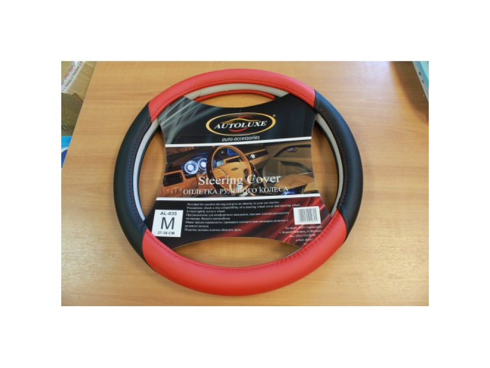 Оплетка д/руля AL-035 (красн.) M