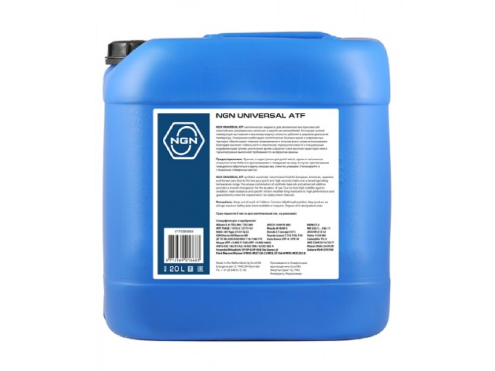 Полностью синтетическая жидкость, удовлетворяет спецификациям: TOYOTA Type T-IV,HONDA Z-1,MAZDA M-III,F-1,M-V ,MMS SP-III,SP-II,Nissan Matic Fluid (D,J,C),SUBARU ATF,SUZUKI AT Oil,AUDI G-055-025-A,VW G 052 162 A1,MAN 339 type D&F,VOLVO 1161540,GM 9986195